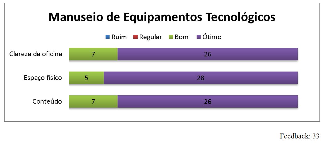 Nas avaliações preenchidas pelos participantes, no que se refere ao que foi apresentado no 1º dia e no desenvolvimento das oficinas pelos os articuladores , foi observado, conforme mostra os gráficos abaixo, que consideraram muito positivo o evento realizado.